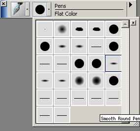 ちなみに右側はためし描きスペース。8ではなんと、二つのブラシをひっかきまぜて変種ブラシが作れるそーで