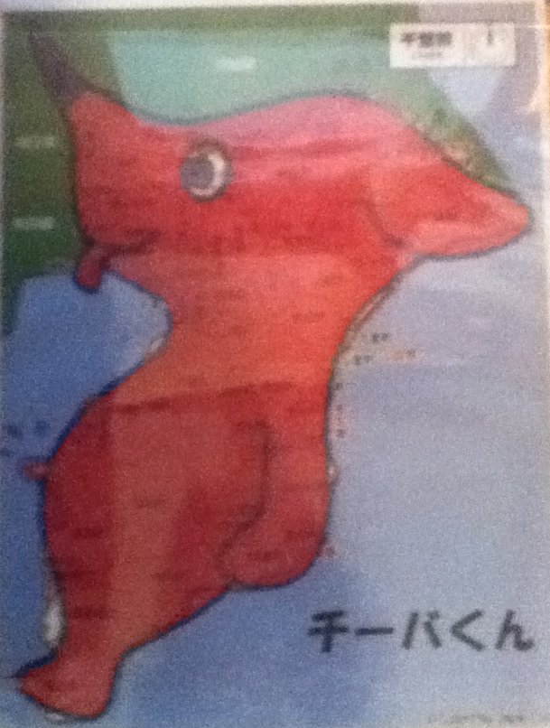 ところで、何故か知りませんが、この博物館の入口には、「富津岬が描き足され、しかも強調されたチーバくん」が展示されていました。ここは富津市ではありませんが、同じ内房にある観光地を「無視」された事が許せなかったのだろうか、などと思いました。