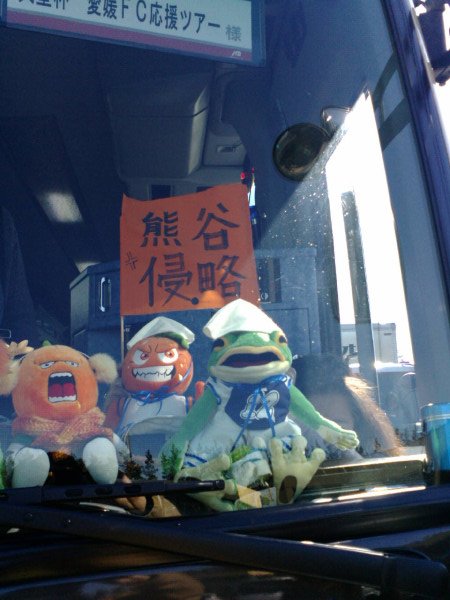 今回は、応援ツアーバスを利用することにしました。電車より高いのですが、長距離移動なので確実に座れる事および、参加者には「一平くんぬいぐるみ」の優待販売があります。