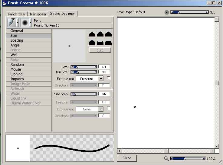 でもって、プロパティバーでは変更できない詳細設定は、ブラシクリエイターで変更可能です