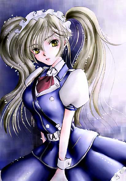 | アルシャードサプリメント「クイーン・オブ・グレイス」に新規追加されたクラス「エイリアス」です。 てゆーか、裏表紙のエプロンなし版のオネーサン、ホレた! きっついお顔にツインテール、メイド服ですよ!! かっくいい! ・・・と思って描いてみたんですが、あんなにステキに描けません(泣)。あうう・・・。 実は少年兵の制服も気に入ってます(短パン+ベレー帽・・・うっとり・・・) 凝りずに、次は少年兵にチャレンジする所存。 とはいえ、好み的には青年のほうがいいし・・・ああああああ〜 |