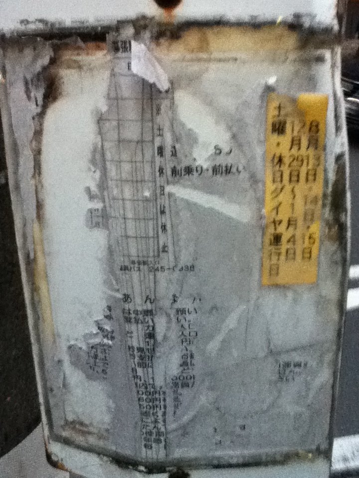 子供の頃から、色々なバスに乗ってきたが、このようなバス停を見たのは初めてだった。同時に、バス会社のやる気のなさを感じさせられた。