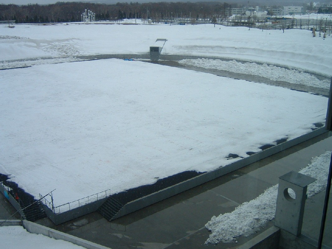 ちなみに、右下の写真は、そのサッカーの試合時にドーム内に入る芝。と言っても、雪に覆われている。しかしながら、ドーム内に置いたままだと数日でダメになるそうだ。ドーム内より雪の下のほうが生育に適しているというのだから、自然というのは面白い。
